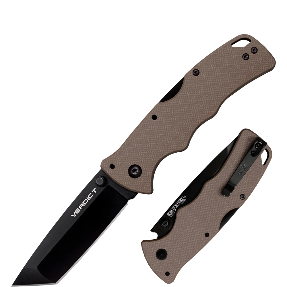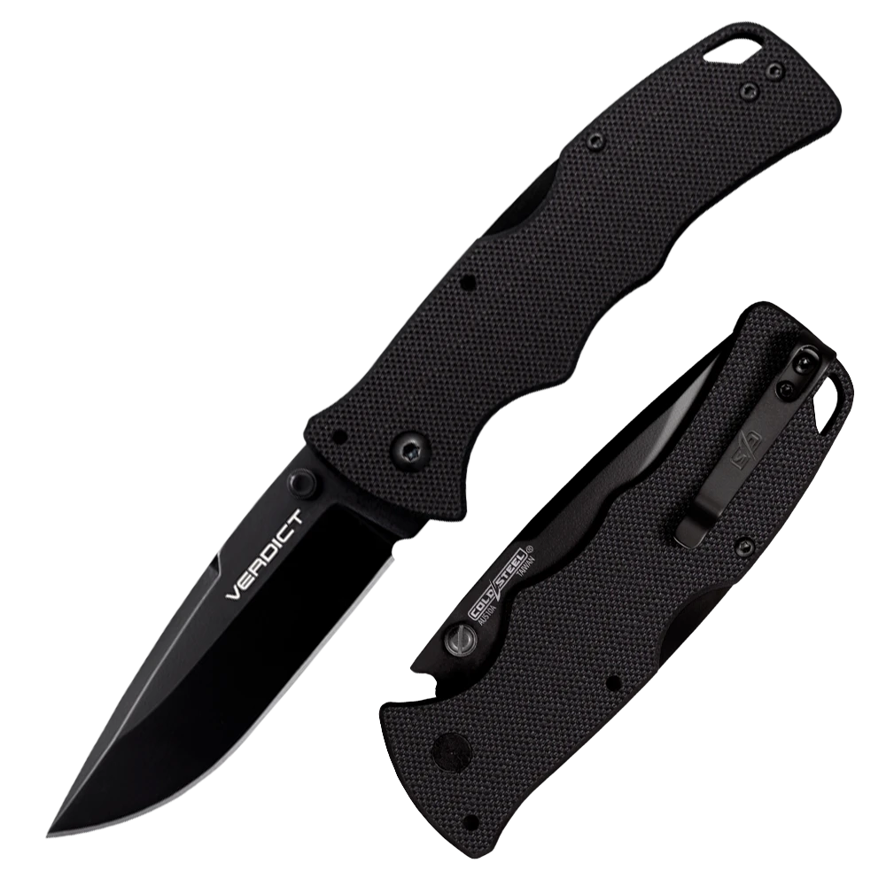 A verdict is a decision, and Cold Steel’s Verdict folding knife series gives users a decisive, rock-solid, everyday carry option. Verdict features the tried and trusted Tri-Ad lock and comes with two steel and two handle material options and an assortment of blade shapes.