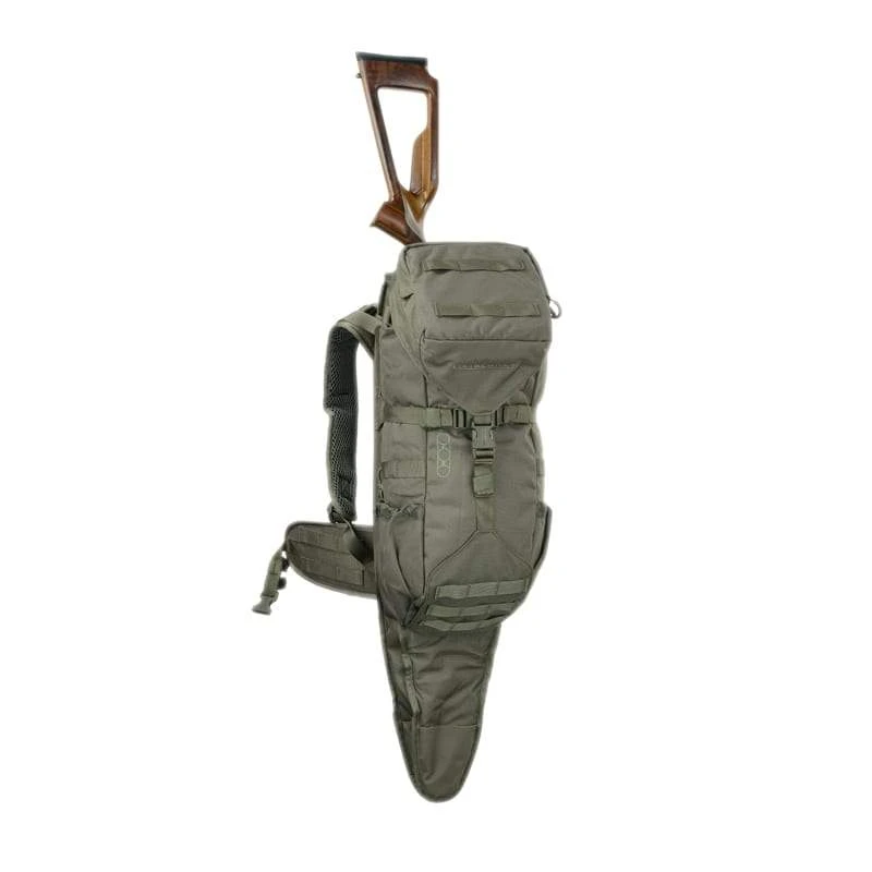 The H2 Gunrunner is a minimalist, lightweight rifle pack with patented Backscabbard. It is designed for hands-free hunting and quick access to your rifle, and has just the right amount of stowage for a day’s outing. The top compartment is a good size for range finders, calls, etc., and the main compartment is sized for a day-outing’s worth of food and clothing.