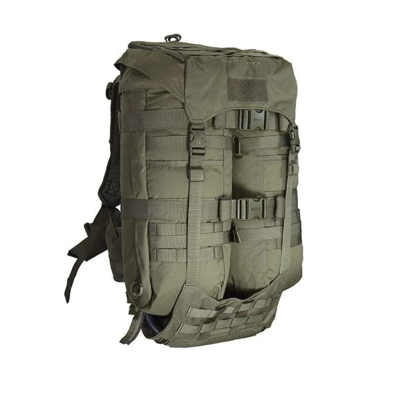 The J51 Warhammer is built around Eberlestock’s innovative Intex-II frame, which gives the benefits of better body contour-fitting ergonomics, closer-to-body load carriage, and a bottom cargo shelf in an intelligently designed package. Because the frame is fully wrapped in the structure of the pack, more along the lines of an internal frame than an external frame, we’ve eliminated frame noise and built an exceptionally comfortable and well ventilated pack. The Warhammer is an off-shoot of our popular J79 Skycrane II but has more generous side/main butterfly compartments, so in effect the Warhammer has more stand-alone capacity. However, the products are very similar in function and use many of the same components. The Skycrane II system includes the G1 and LP1 packs, which can be purchased separately when building a J51-based pack.