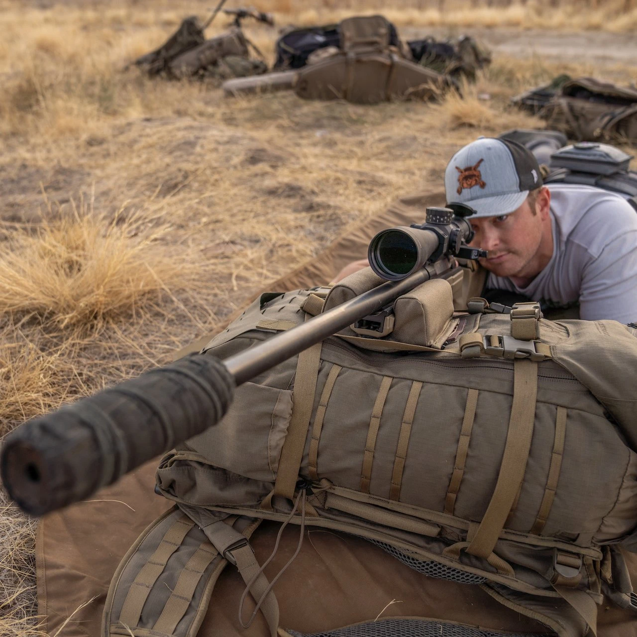 This ultralight backpack mountable shooting rest is a perfection of the kind of rest that the Marine Corps Sniper School teaches its students to make. You can attach it to any 3-wide MOLLE or PALS panel (our Padlock system), using its built-in attachment clips. This nicely finished rest can be quickly detached and remounted to various surfaces of your backpack, giving you the ability to set up a field rest with an optimal elevation for the particular place that you’re shooting from. This simple rest is a great lightweight alternative to shooting sticks, bipods, and hardware-based shooting rests.