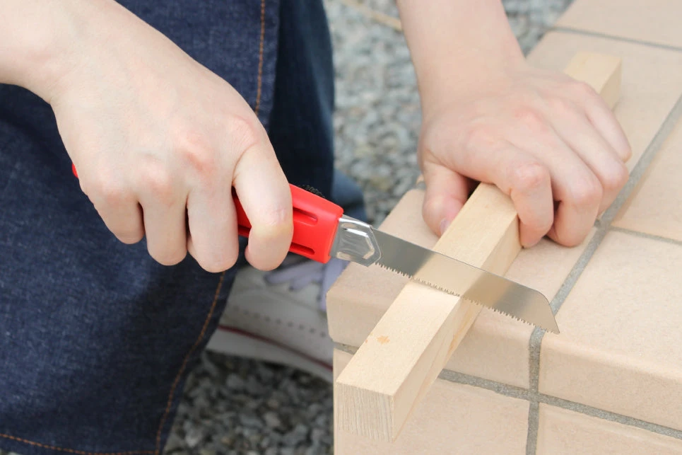 It’s a mini-saw in a cutter knife style. The blade is only 80mm long and very small compared to our regular hand saw. Easy to carry it around. They have the same serration as our regular handsaws, so although it’s very small it works just like a hand saw. Can cut general timber, Laminated wood, bamboo material, PVC, and acrylic resin.