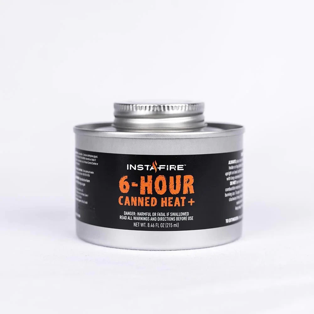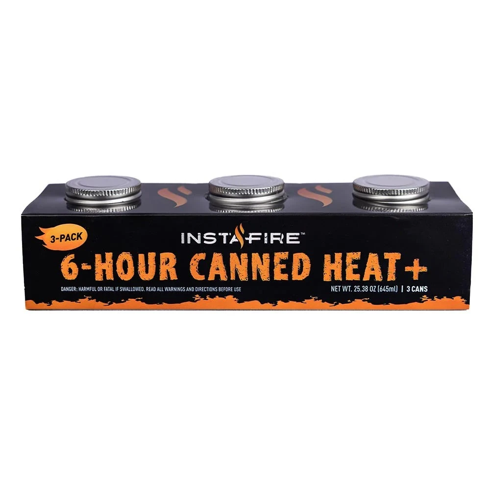 The InstaFire 6-Hour Canned Heat+ & Cooking Fuel flame maintains steady heat for six hours, non-stop. Cook several meals quick and easy or use these cans in a VESTA heater to warm a room through the night.