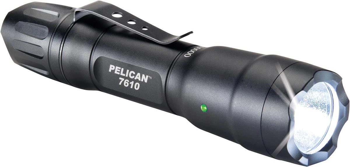 Don’t let low battery power freeze you in your tracks. Our new Pelican 7610 tactical light is compatible with 1 AA, 2 CR123 or the Pelican 18650 lithium-ion rechargeable battery, giving you choices to reload with more battery options to keep the mission going. The power is up to you. The Pelican 7610 is loaded with high, strobe, medium and low mode options that can be programmed in five different combinations. A full time battery level indicator and armoured with a type III hard anodized finish, the Pelican 7610 can take a hit and will never keep you guessing in the dark.