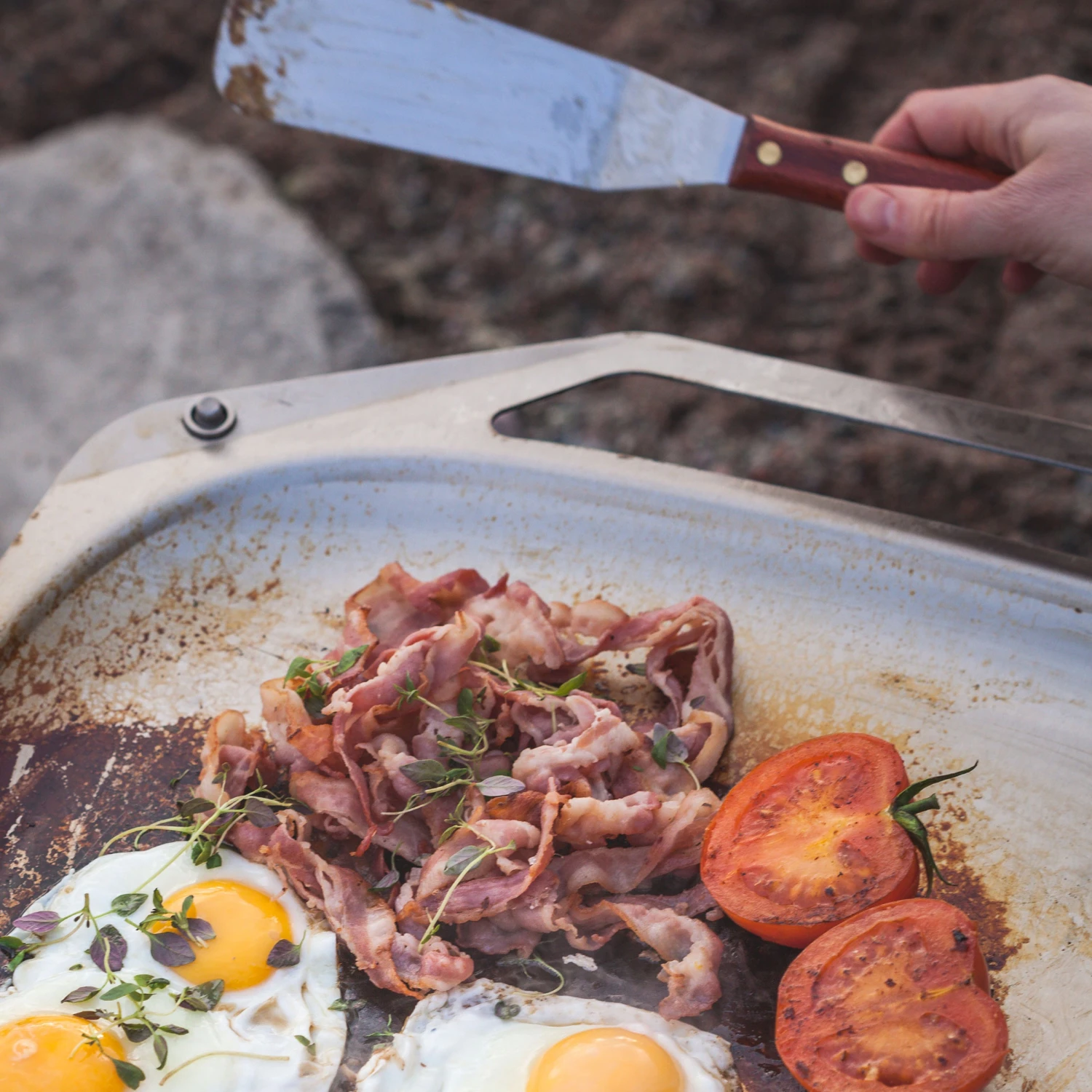 OpenFire Spatula is a big spatula with a wooden handle. A cooking tool for those with high demands when it comes to choice of material and performance. The spatula has a stainless steel blade that is very flexible and the shaft is made of oak, which is highly resistant to moisture. In other words, this is a resistant spatula that is ideal for outdoor cooking. A perfect tool for Primus OpenFire pans and Kamoto OpenFire Pit.