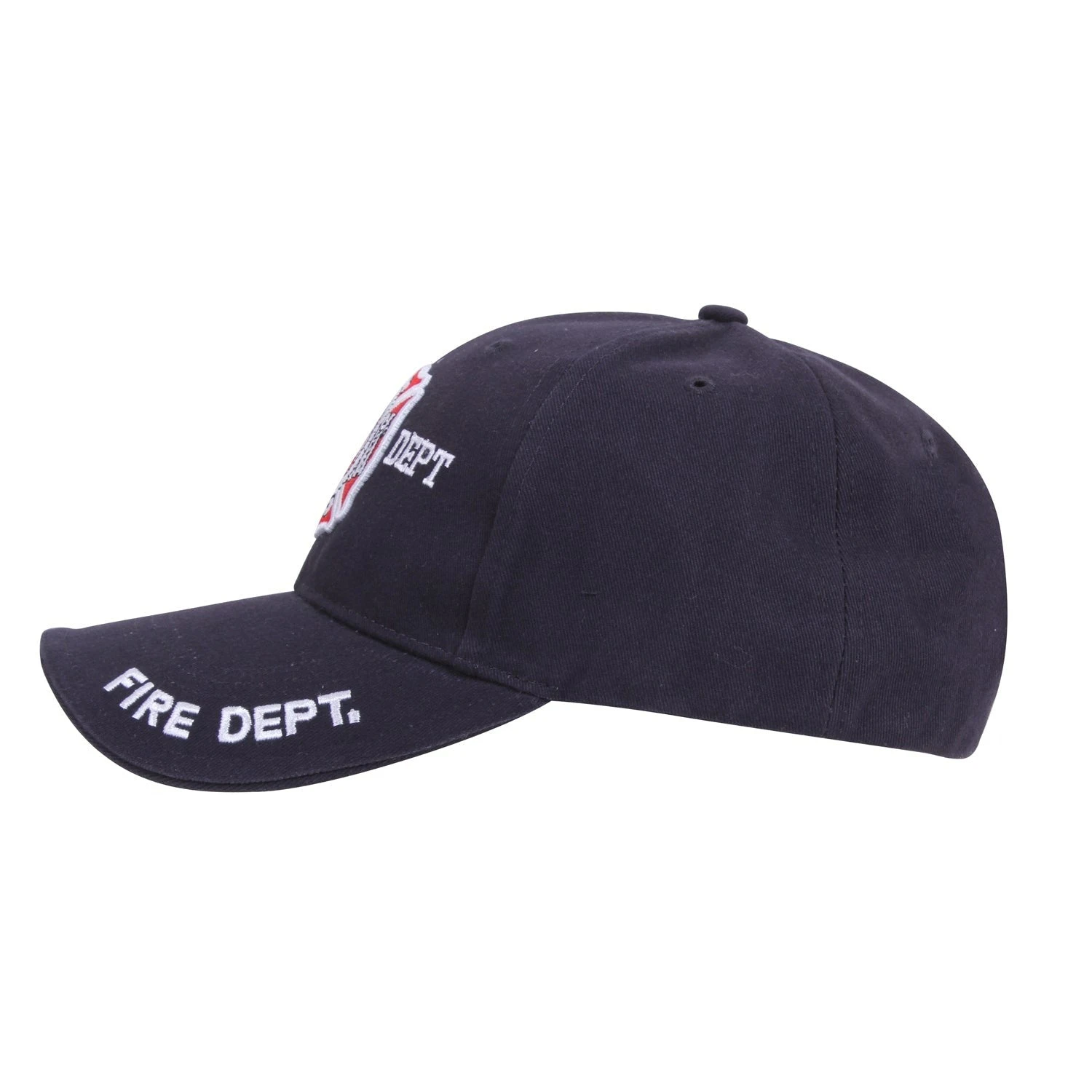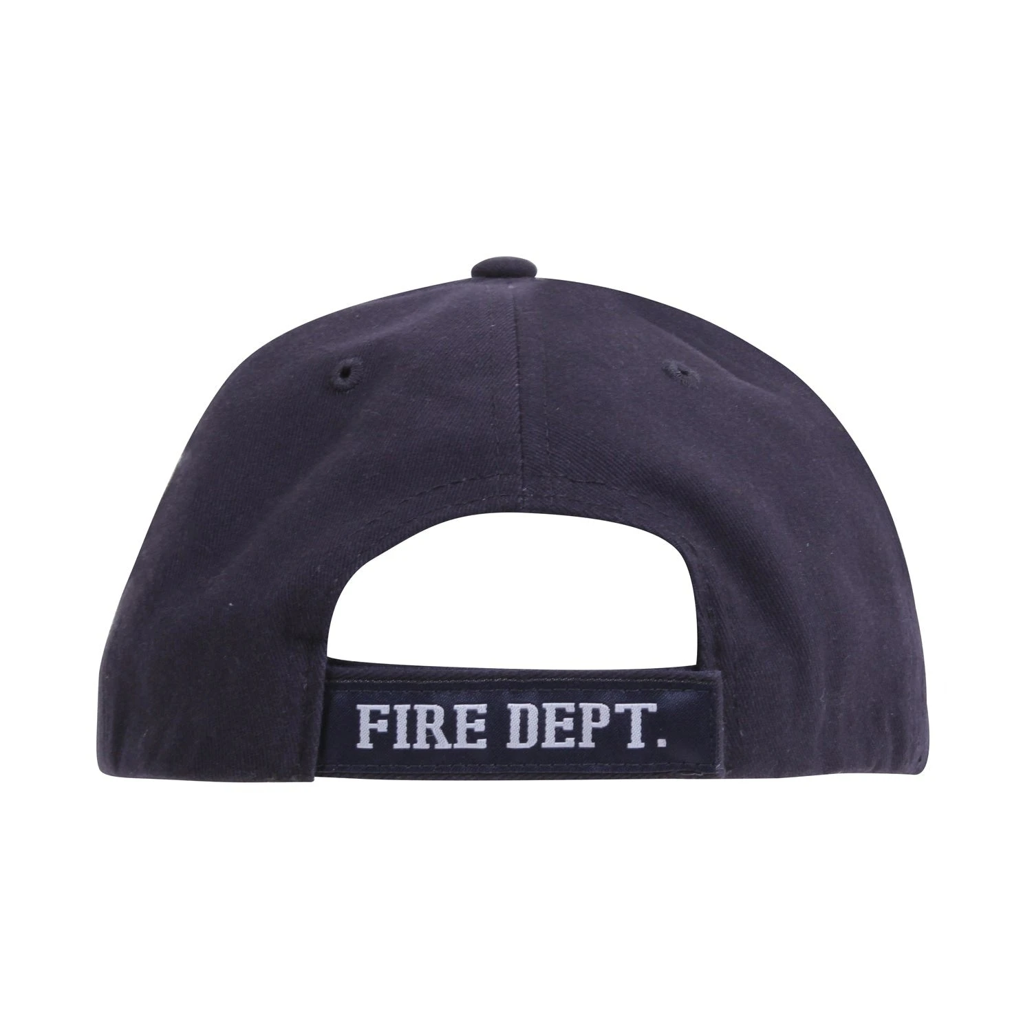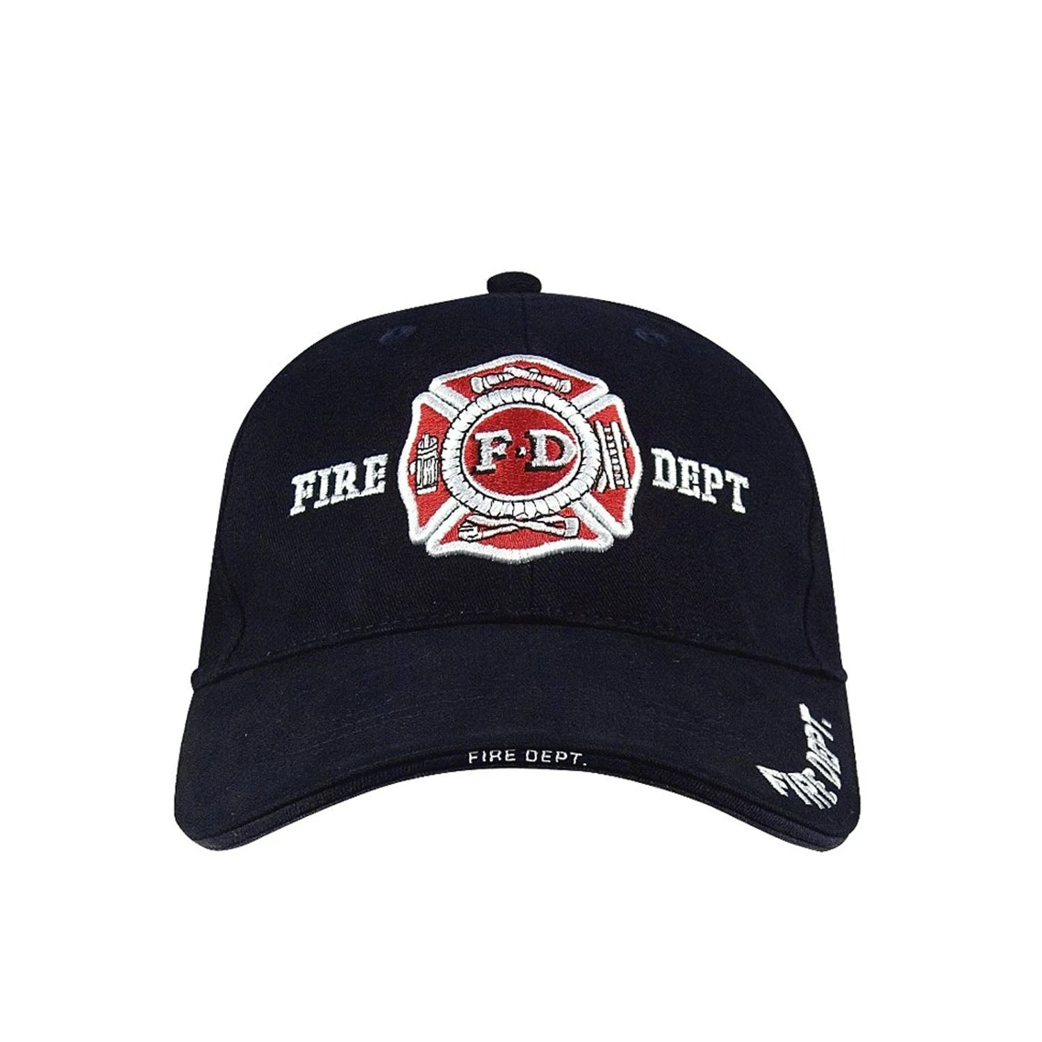 Rothco Deluxe Fire Department Low Profile Cap features a brushed cotton twill with raised 3-D embroidered “Fire Department” text and Maltese cross on the front panel; brim just has text. The cap features a sandwich bill and back strap insignia with an adjustable hook and loop closure.