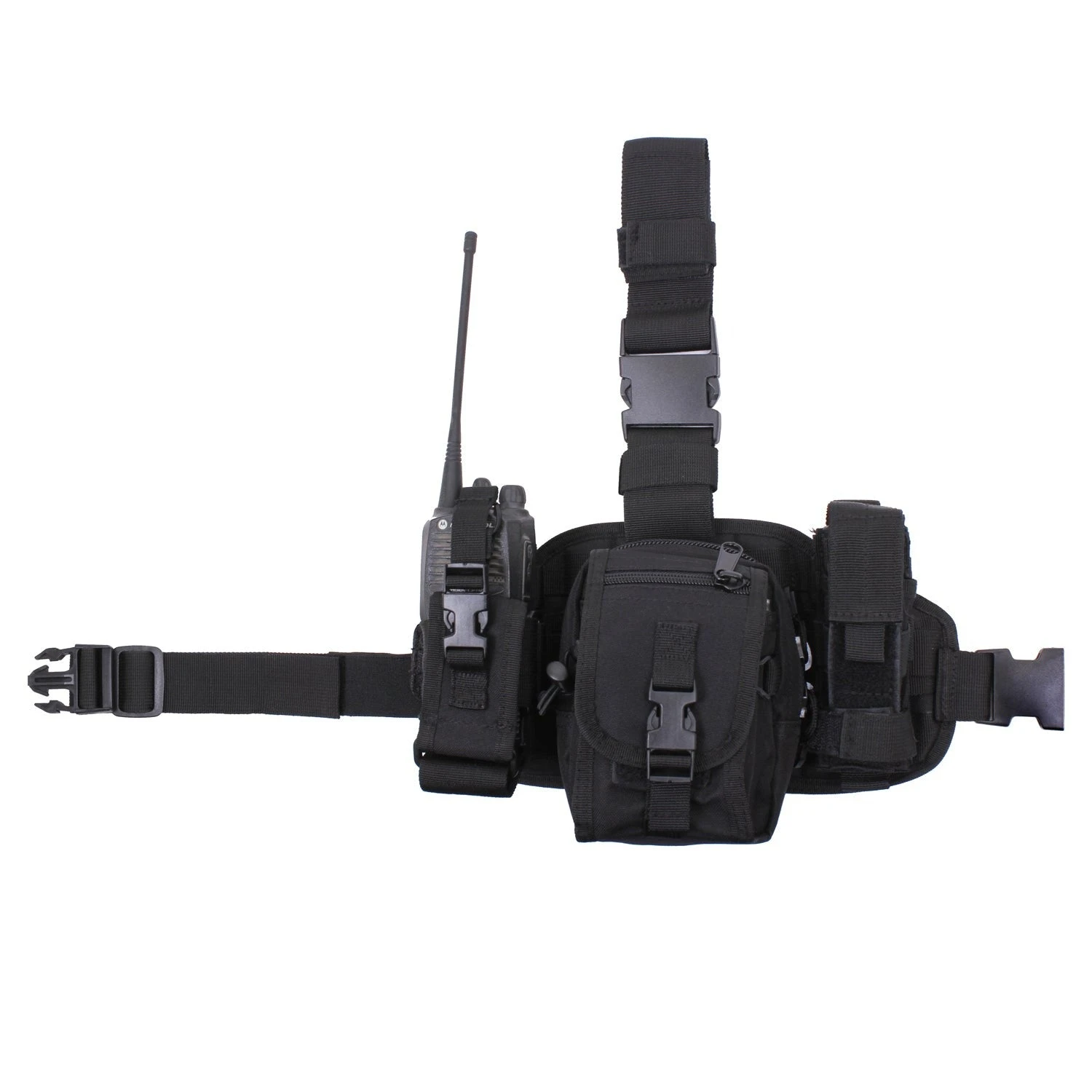 Rothco’s Drop Leg Utility Rig is made of a rugged polyester material and features a 6.25 inch x 12.75 inch platform with MOLLE loops and padded back, and 3 removable MOLLE compatible pouches. The belt and leg straps feature quick release buckles and are fully adjustable. Padding and MOLLE looping are included on the back side for additional padding and anchor points. Rothco’s leg pouch is ideal for a variety of tactical and law enforcement operations.