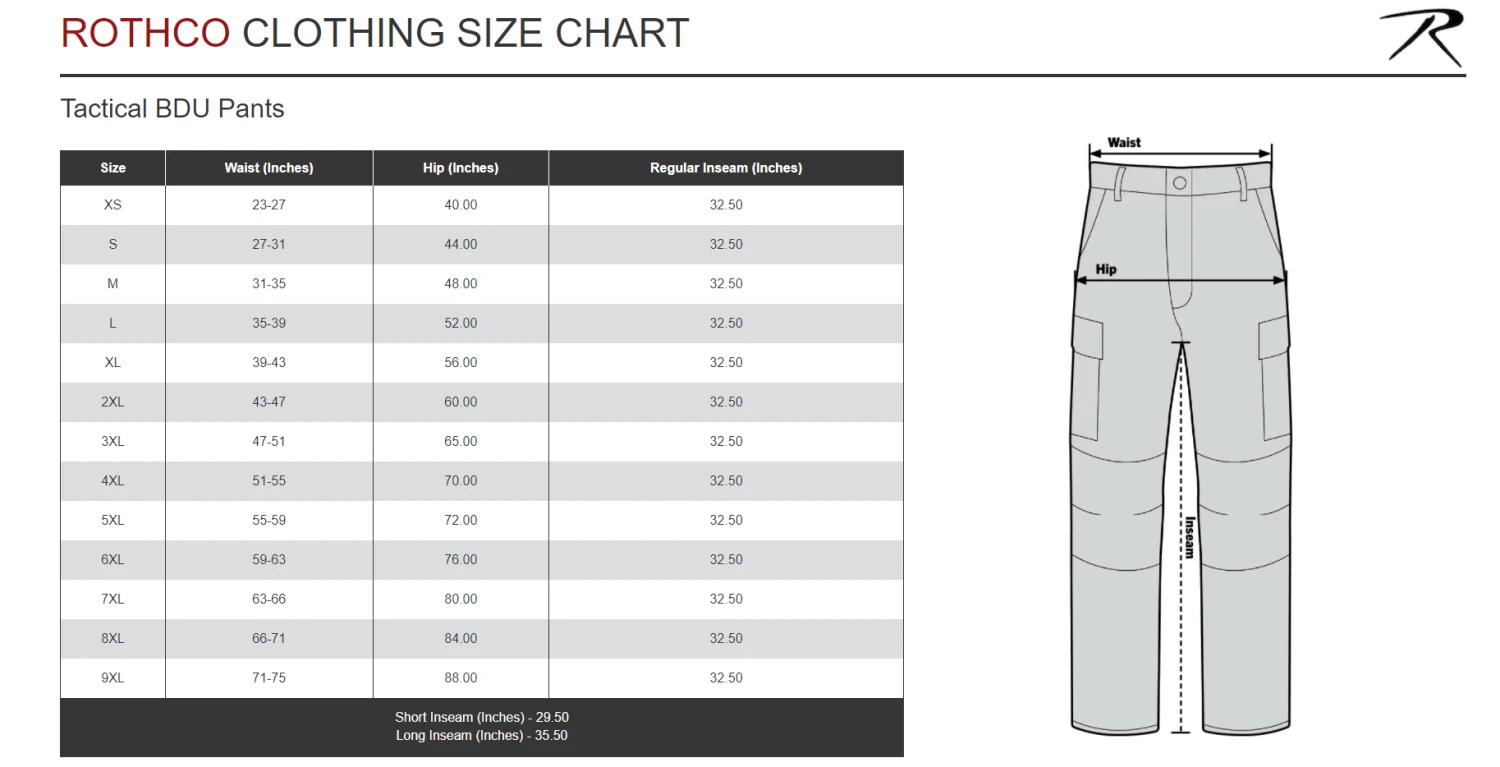 Rothco’s Relaxed Fit Zipper BDU Pants are made of the same comfortable, durable 55% cotton/45% polyester material as our military style BDU Pants but feature a 1-inch wider leg opening for a more relaxed fit, and a zipper fly instead of a button fly.