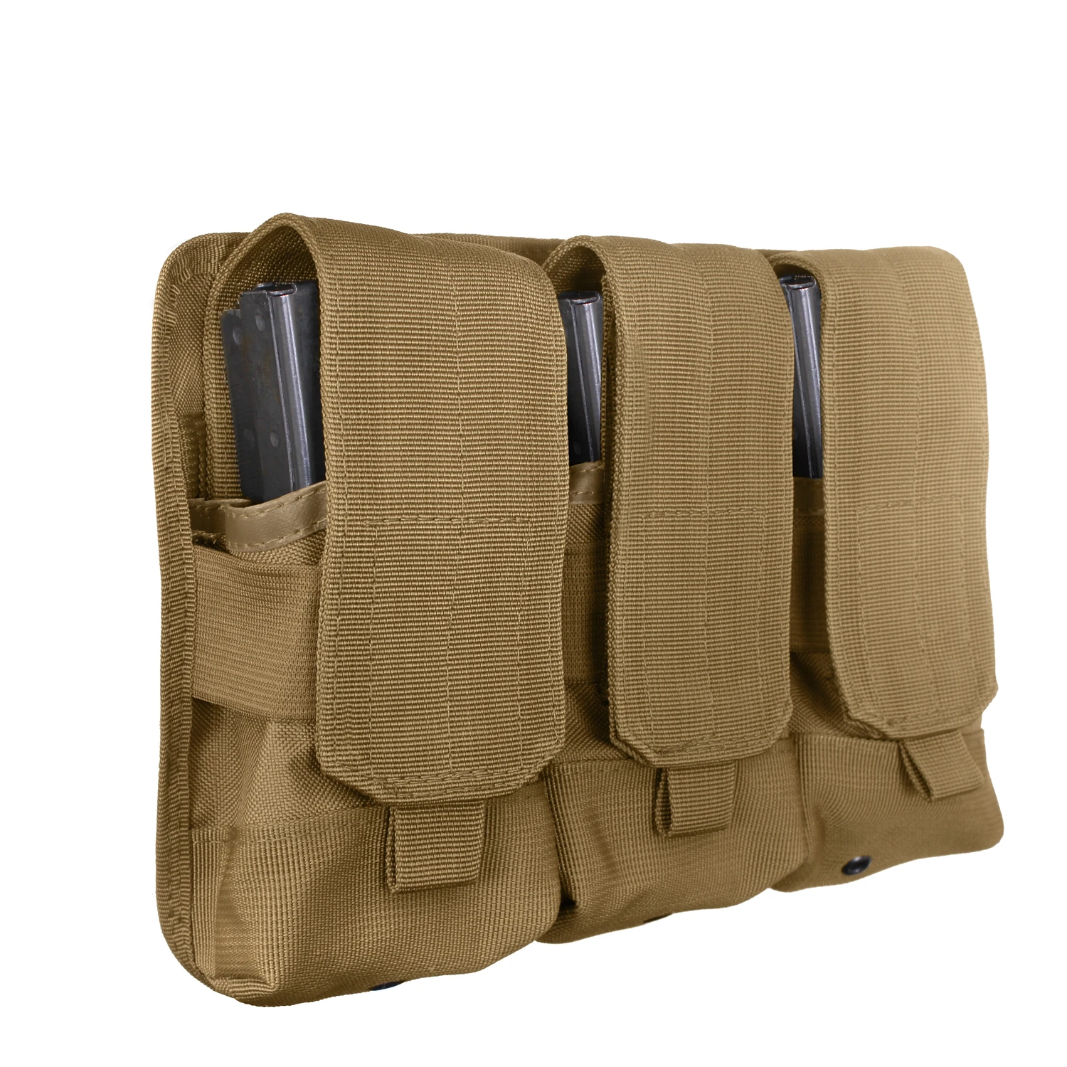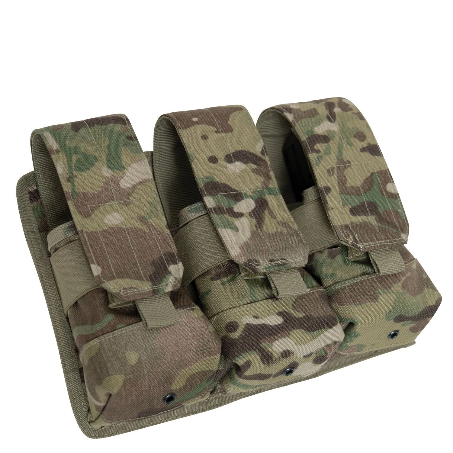 Rothco’s Universal Triple Rifle Magazine Pouch is designed to secure six M-16 mags or three AK-47 mags to provide you with versatility at the range or in the field. Each pocket contains a hook and loop flap closure so you can adjust the length of the flap based on which magazine you are storing. Constructed with long-lasting denier polyester (MultiCam made of denier Cordura nylon), the pouch is designed to withstand the weight of your ammunition.