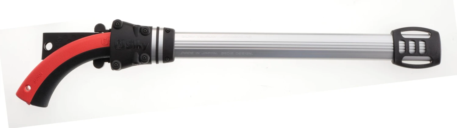Thanks to Silky’s creative team, the TSURUGI comes to market as perhaps the lightest weight, best balanced “big saw” ever produced, having no handle screws, nuts or extraneous hardware to keep it together. The comfortable, 2-part rubber grip is held together by an ingenious integration with the blade tang. And as if the saw alone weren’t enough, each Silky TSURUGI handsaw comes in a unique aluminum scabbard that can be attached to the belt or leg depending on the user’s preference, and has eight rollers protecting the entryway.