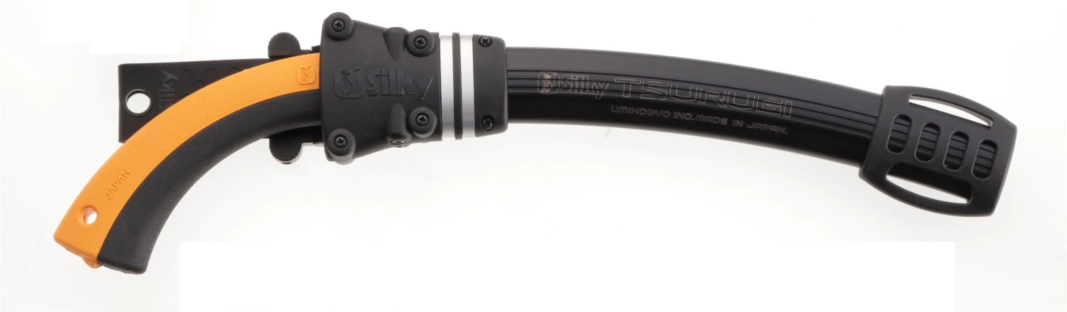 The Tsurugi Curve is similar to the uniquely designed straight Tsurugi, but is a much more aggressive impulse-hardened blade in popular sizes which will still fit into tight crotches without damage to opposing limbs. The Tsurugi is possibly the lightest weight, best balanced “big saw” ever produced, having no handle screws, nuts or extraneous hardware to keep it together. The comfortable, 2-part rubber grip is held together by an ingenious integration with the full tang blade. The Tsurugi Curve comes in a unique aluminum scabbard that can be attached to the belt or leg depending on the user’s preference, and has eight rollers protecting the entryway.