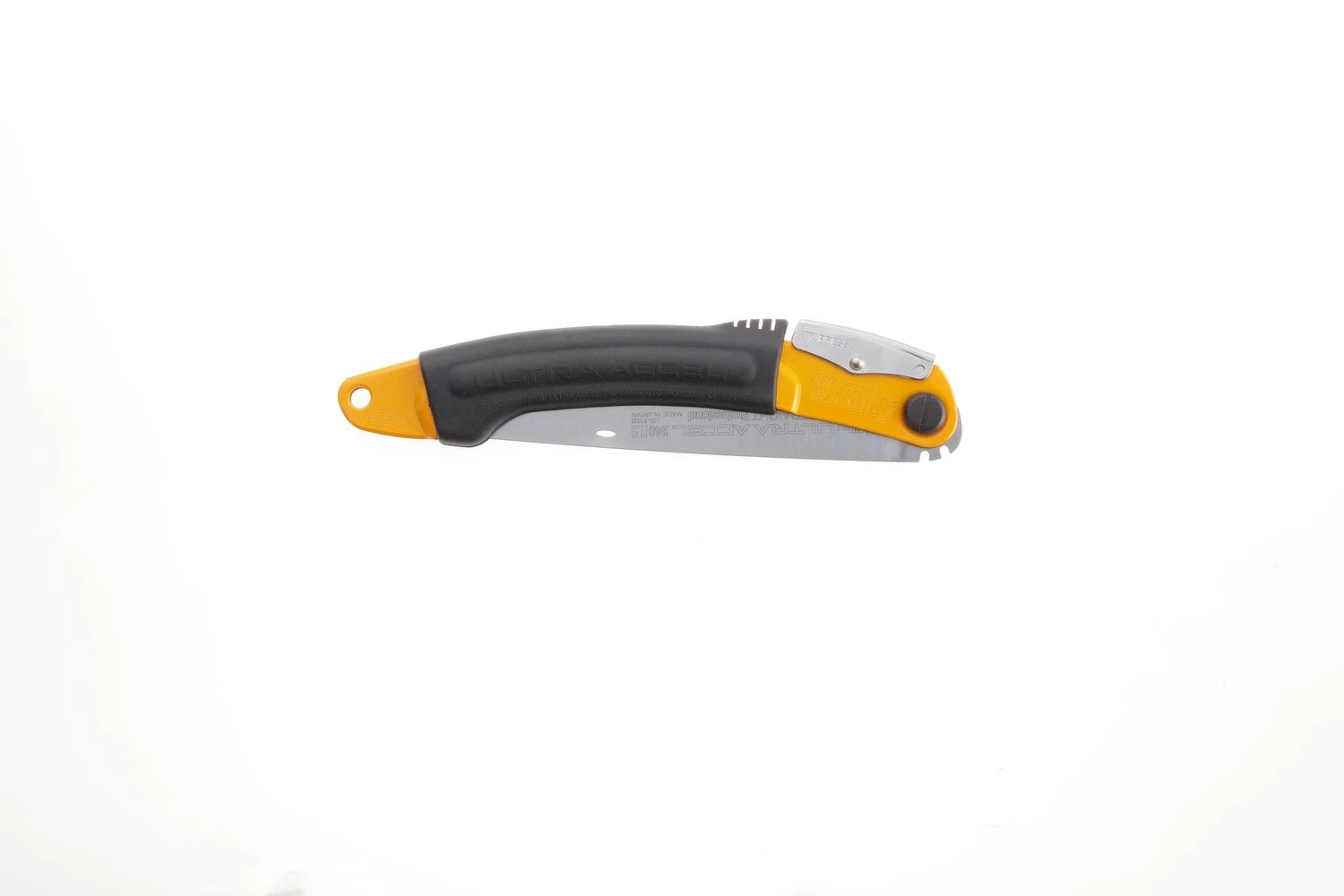 Amazingly durable folding saw with a straight blade. Sturdy and lightweight aluminum chassis. Easy-grip rubber handle.