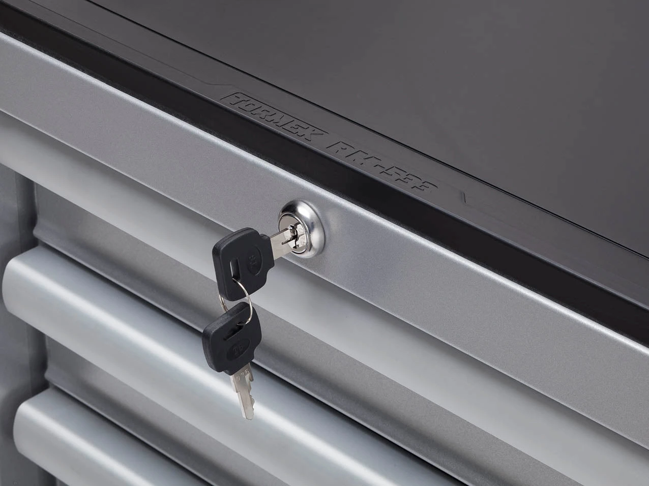 Supplied with the Tormek drawer inserts for the accessories that comes with the machine for the Hand Tool Kit and for the Woodturner’s Kit. (Accessories and jigs not included.) Three extra drawers with practical rubber matting. It has two drawers that have a height of 6 cm and four drawers that are 9.5 cm high. Auto-return drawer mechanisms for soft closure.