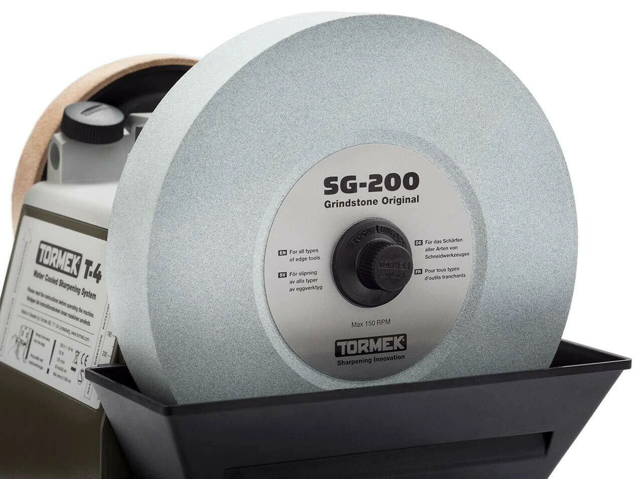 Tormek offers a range of jigs for various tools which can be purchased separately and used on the same system according to your needs. Chisels, drill bits, scissors and woodturning tools are examples of other tools that you can sharpen with the Tormek T-4 Bushcraft.